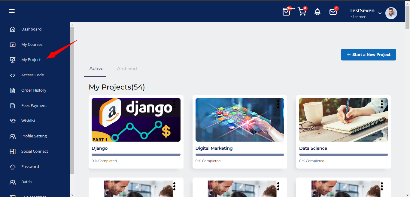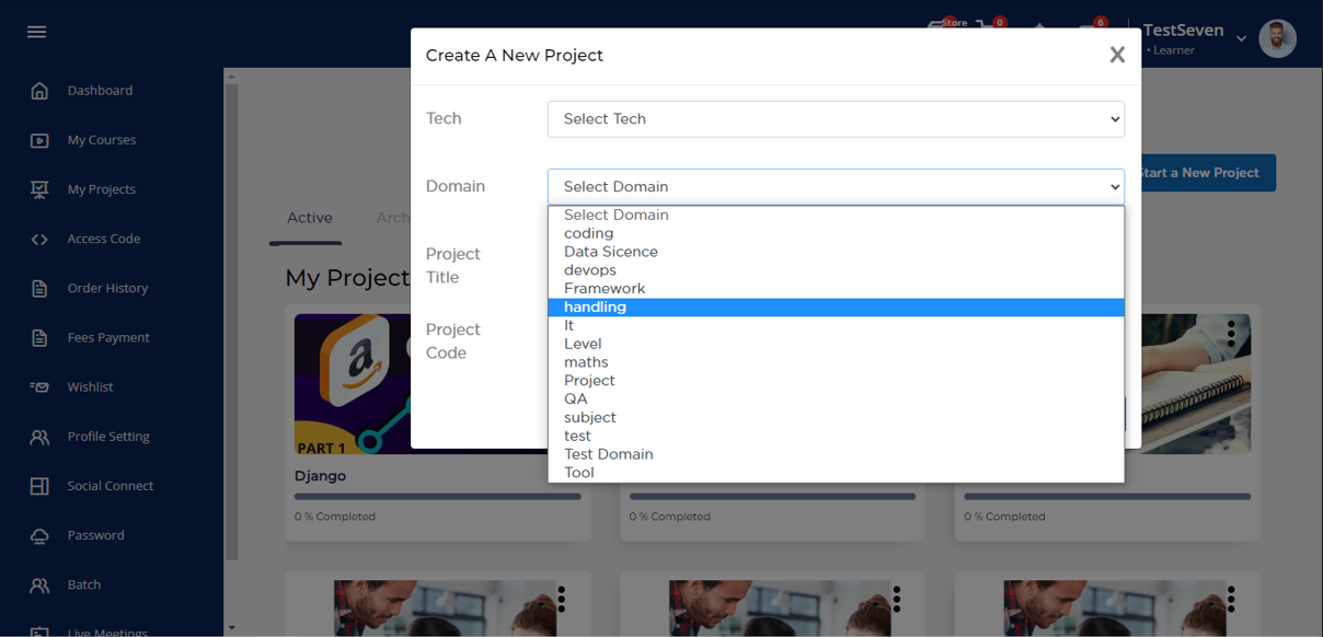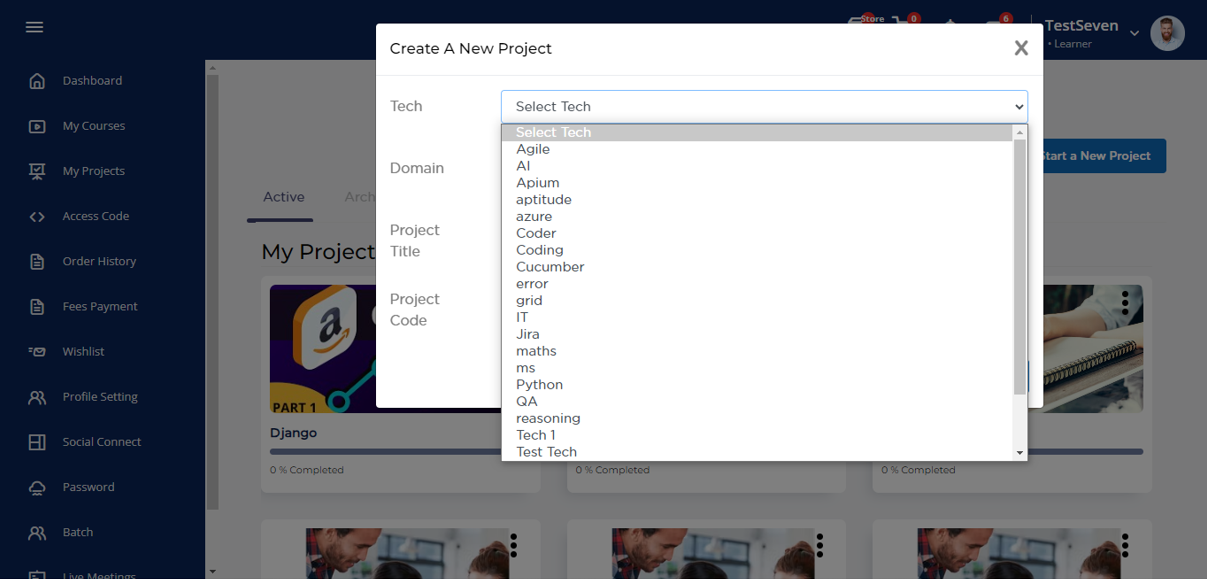 This article determines how to create a project - Create project - 1. Go to Dashboard->Instructor -> Content -> Project 2. Click on New project button 3. Fill the details in create project form. Project - Enter project name Instructor - Select ...