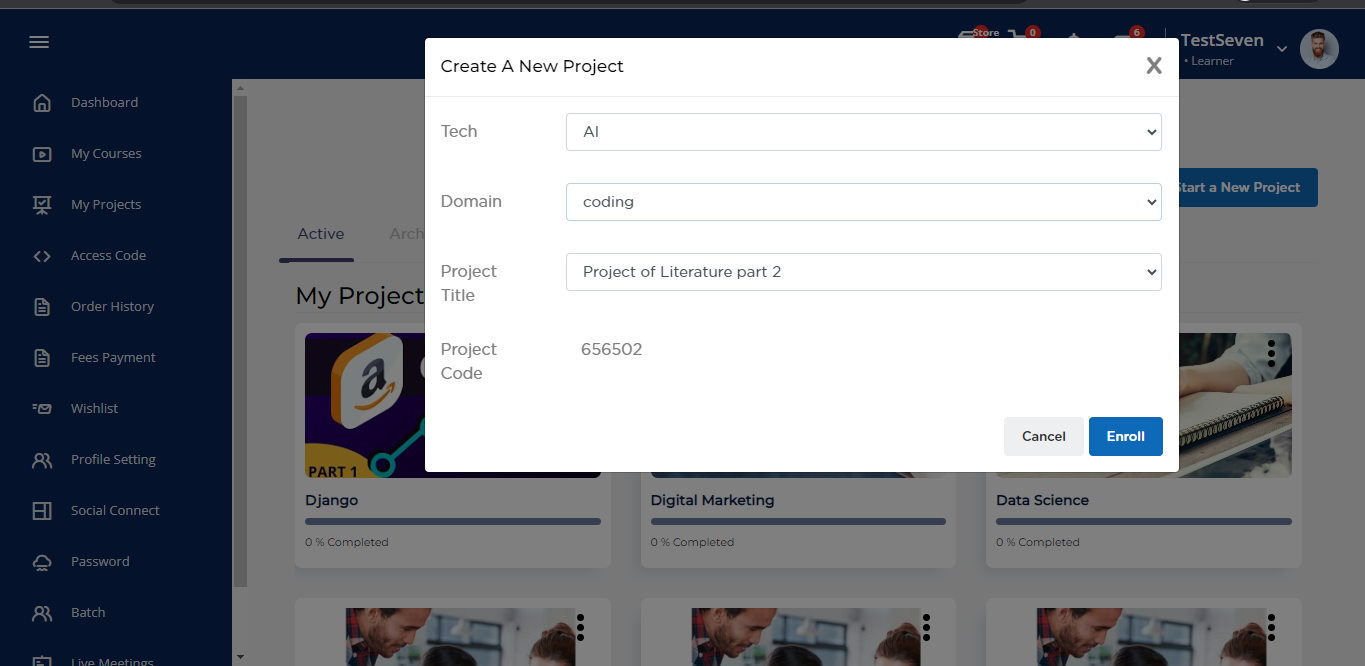 6. Then Click on Enroll button and project will be visible on My projects page.