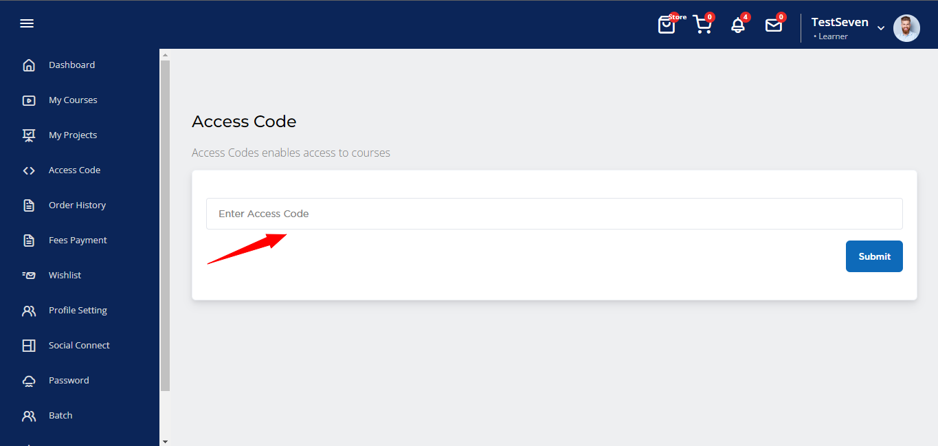 Access codes are used for accessing any course without purchasing it and accessing it through some codes. To create any access code, go to any cousre details and click on the Access Code option. The list of access codes will display if you have ...