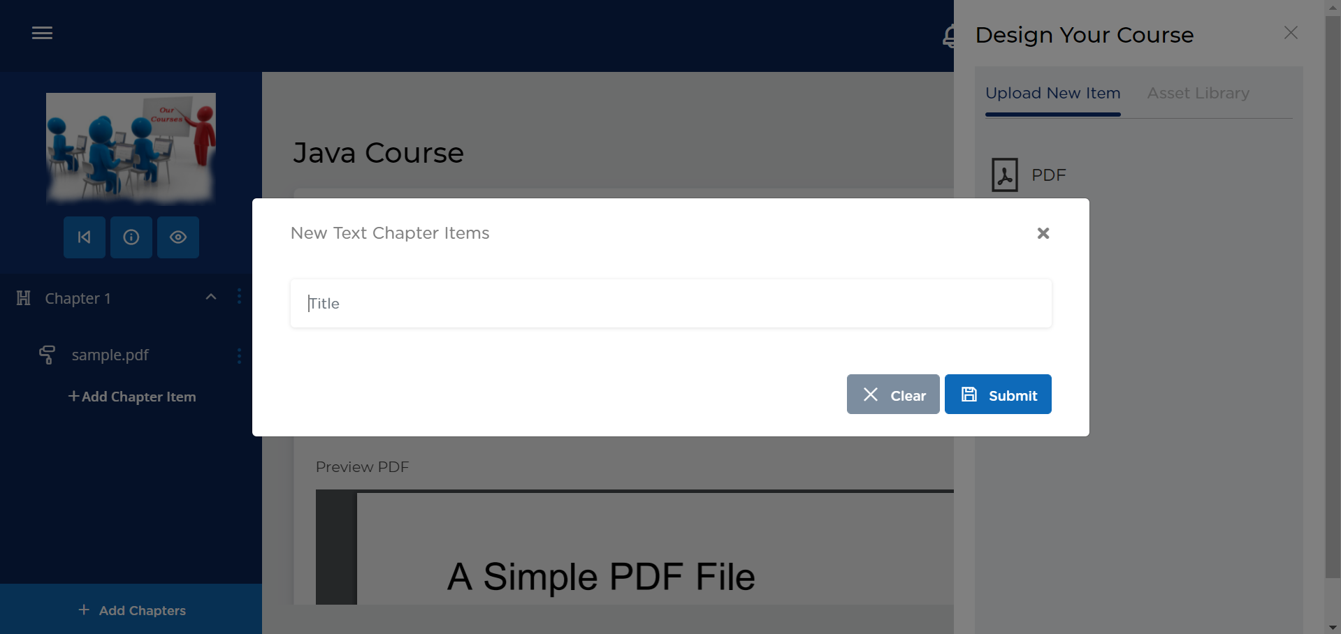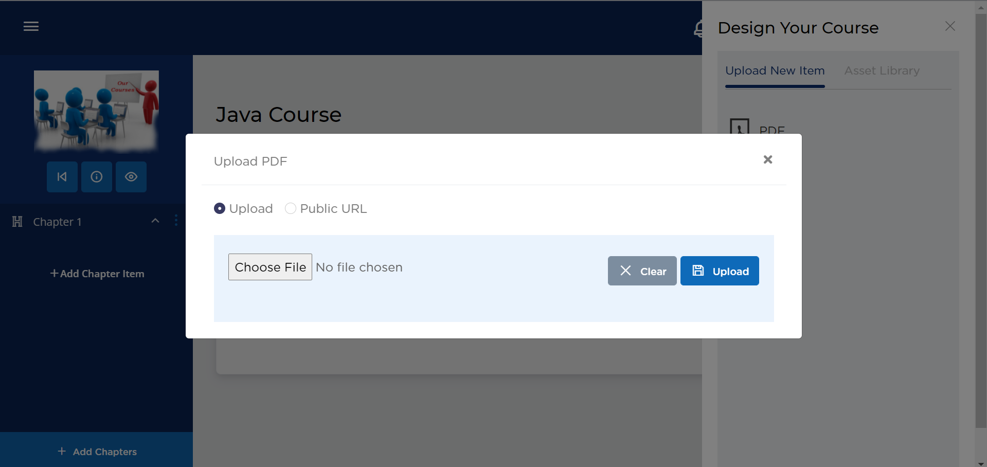 A set of options would pop-up in "Design Your Course" section to select your preferred form of uploading content.