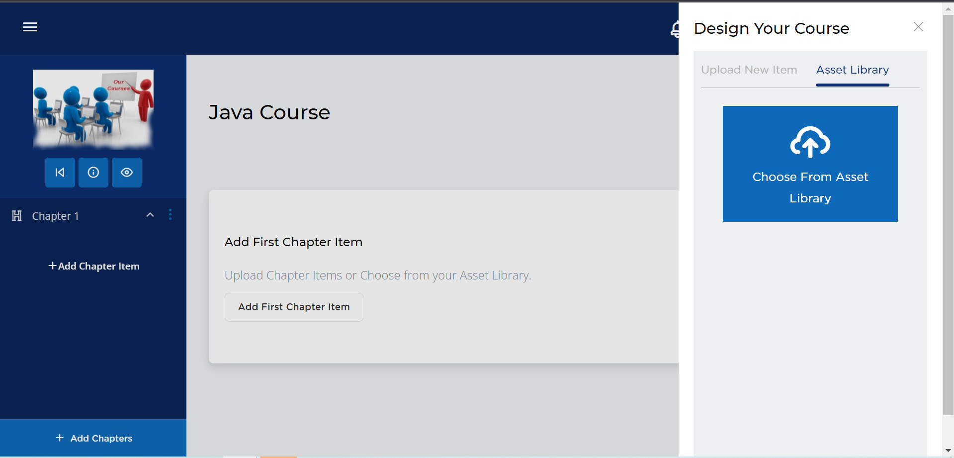 An asset library is your personalized library consisting of all the course materials uploaded by your institution. Here, you can choose any document which is uploaded at any time in your institution panel and add them in your current course.