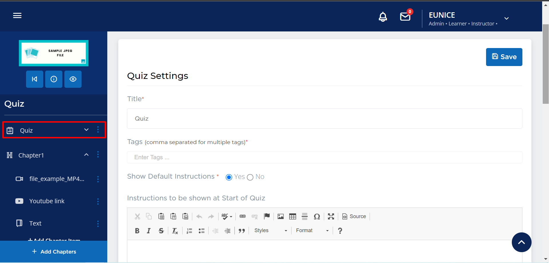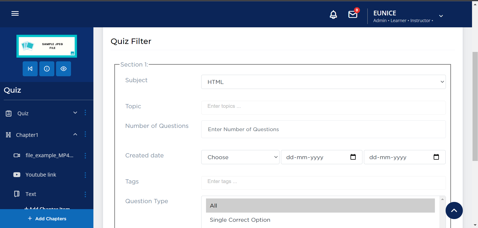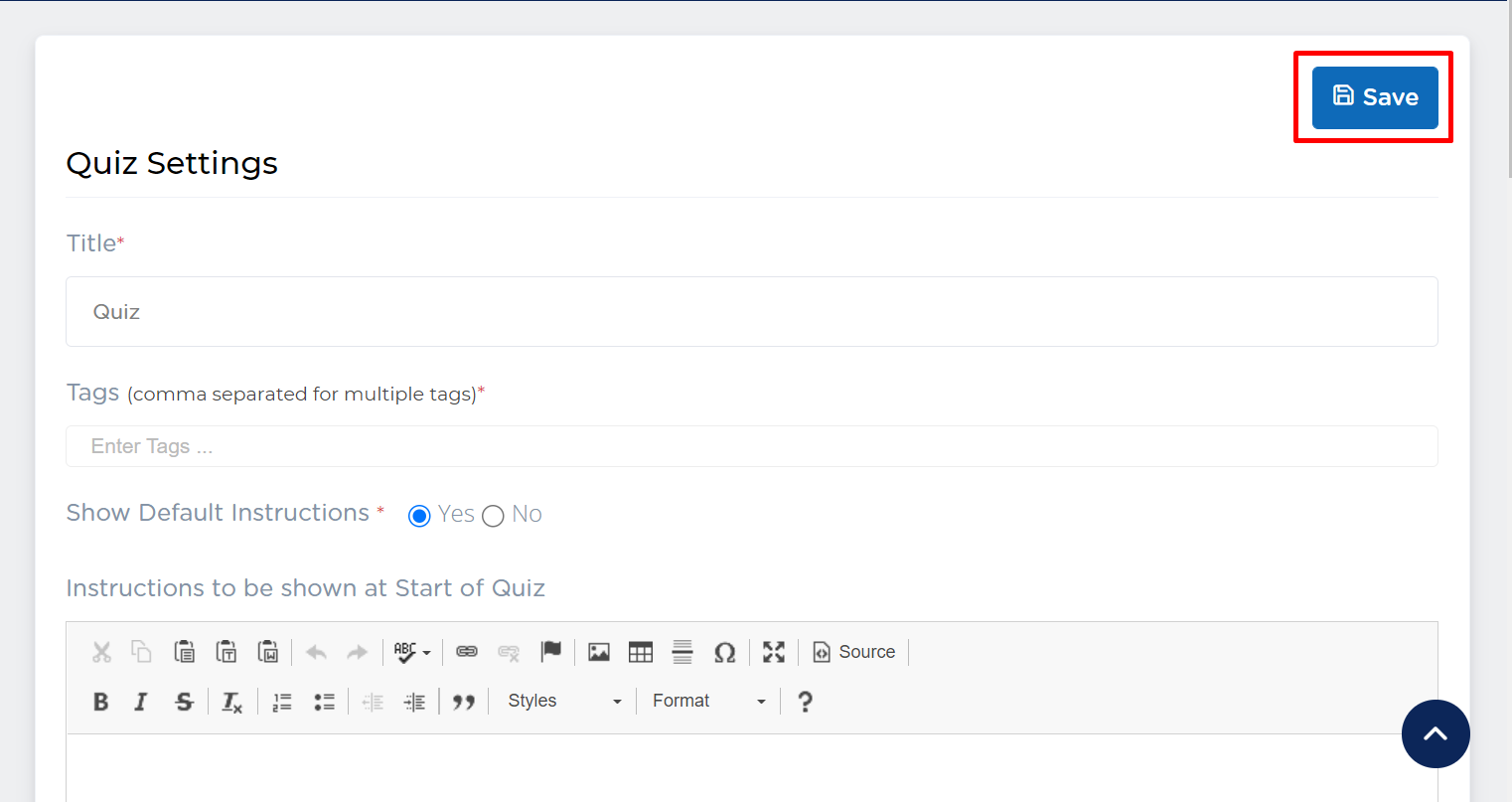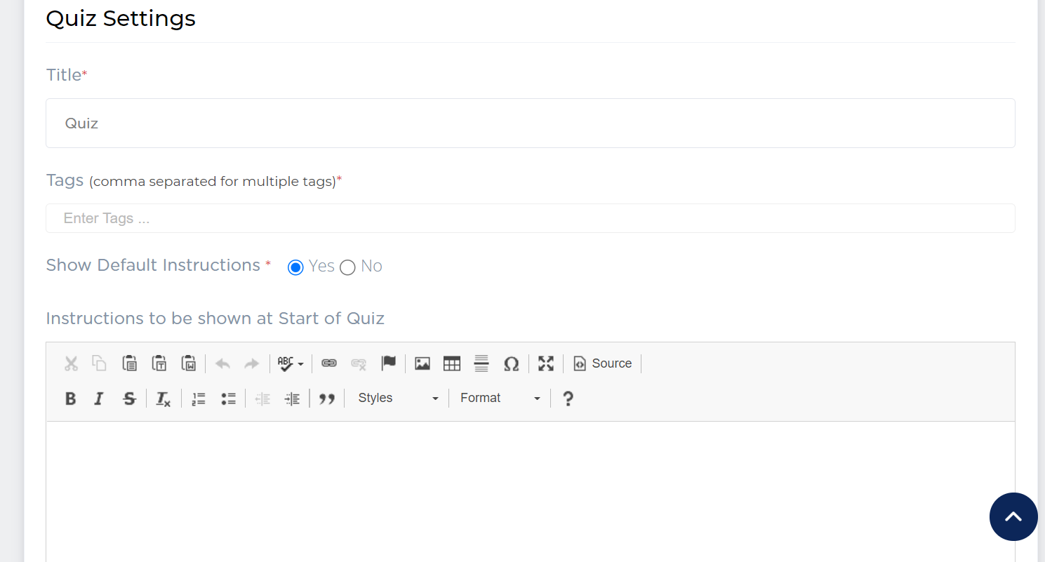 Tags: Select the tag under which you want to mark this particular quiz. It helps with the segregation of topics.