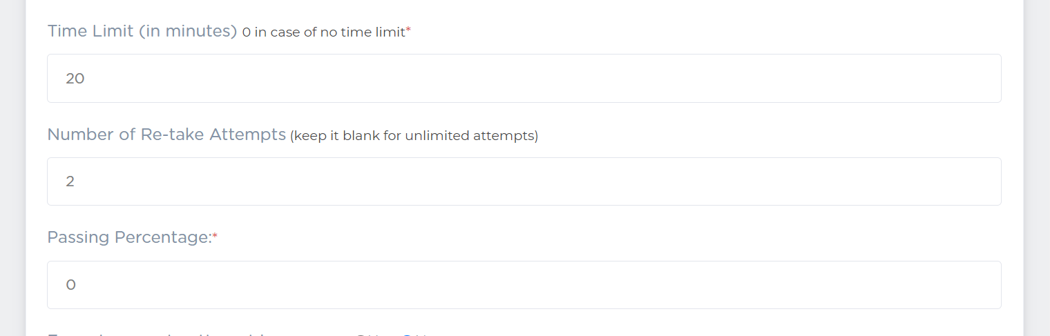 The number of Re-take Attempts: The no. of allowed attempts that you entered on the previous page would be shown here. You can edit this option here as well.