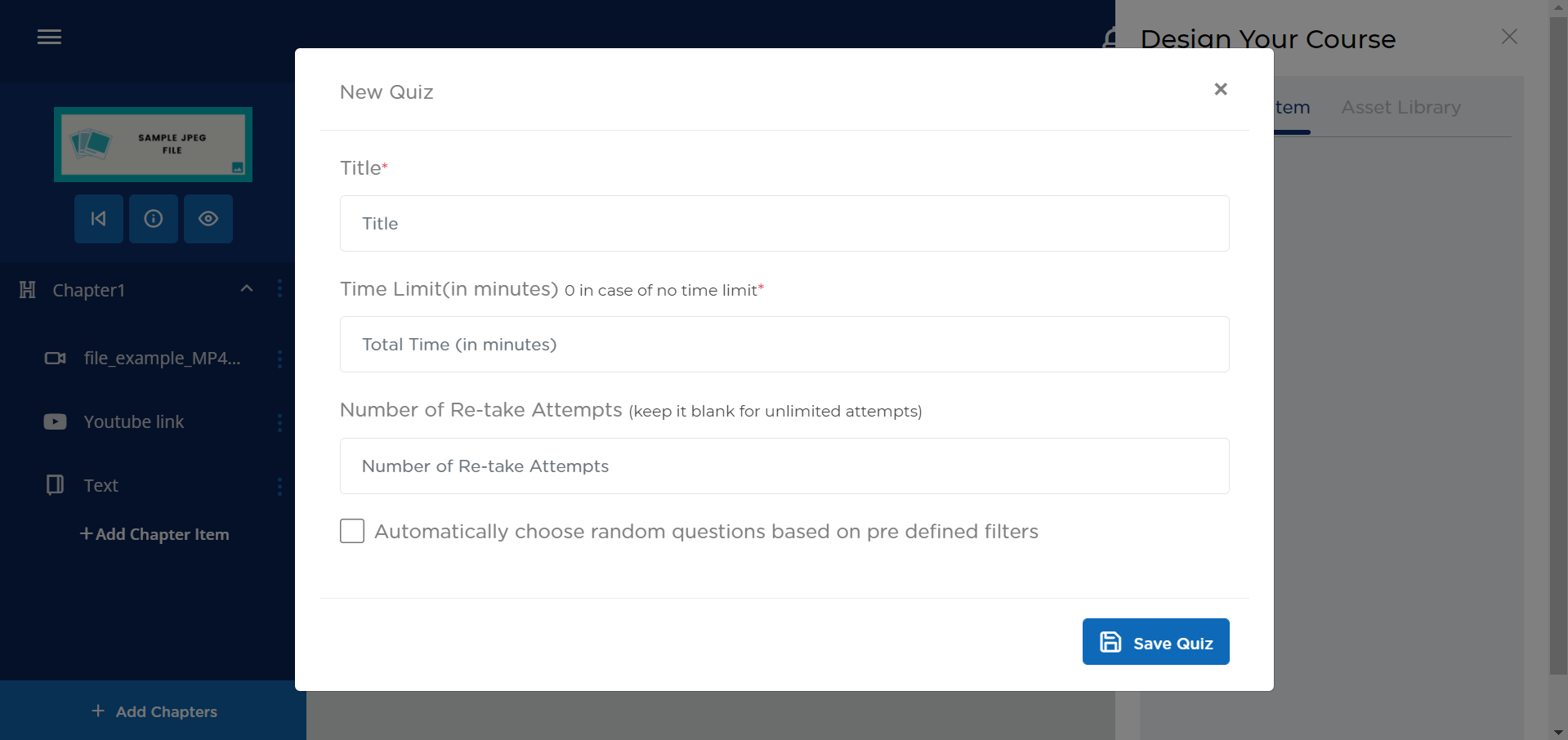 Time Limit: The Quiz Time Limit that you entered on the previous page would be shown here. It is editable.