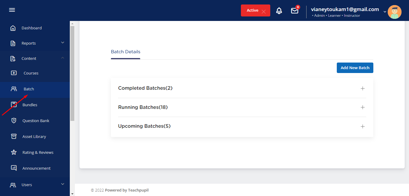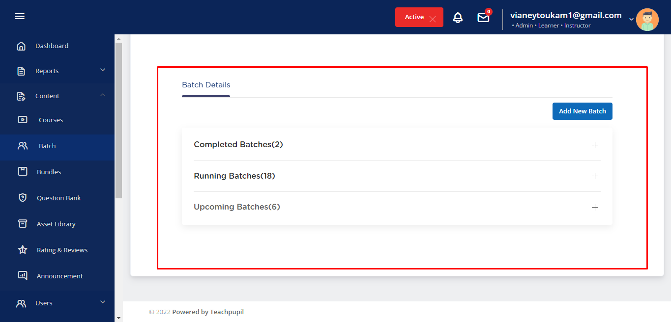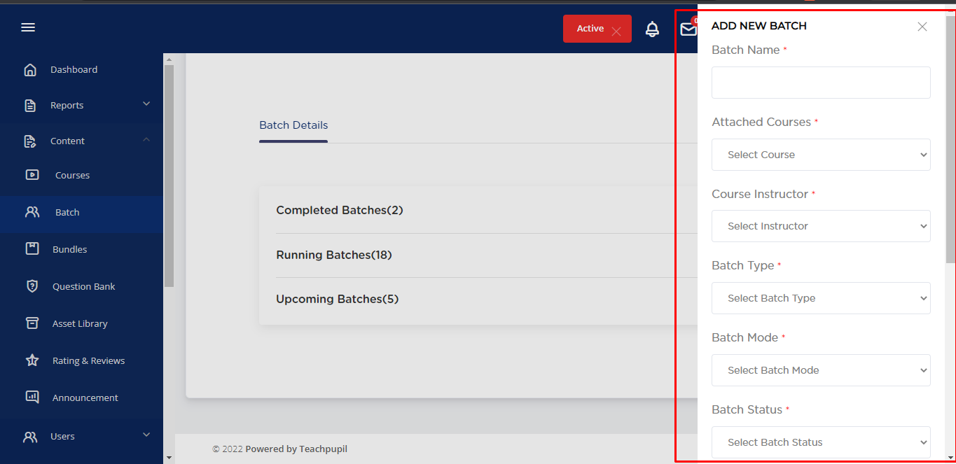 Now, fill all the details in the require fields and click on "Add batch". Then, it will display message "Batch created successfully".