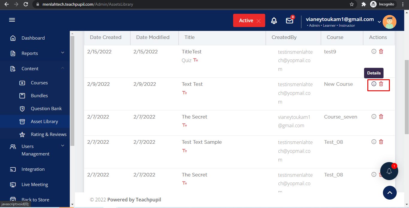 Once the Assets are saved in course builder, you can edit/delete it from the Asset Library as well.