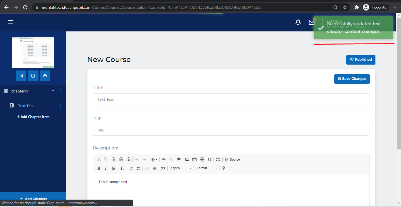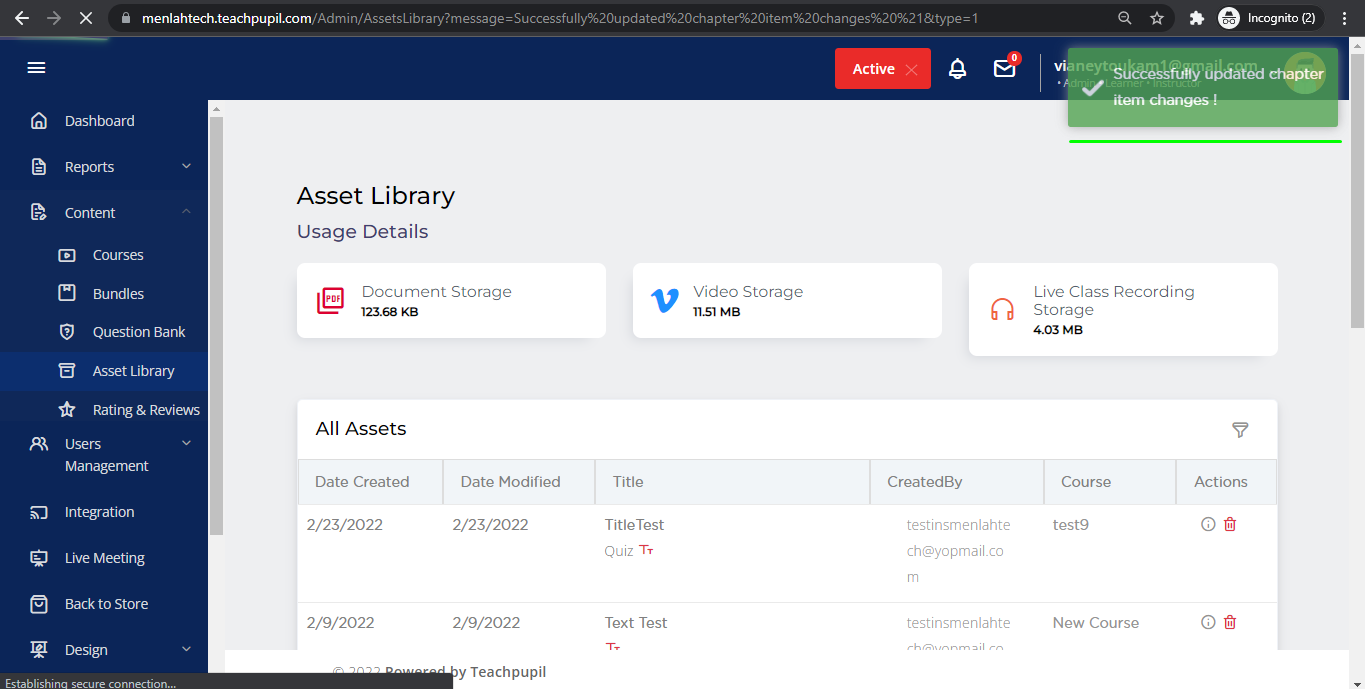 You'll see the list of Assets, from the Action section you can either edit/delete the details of chapter items.