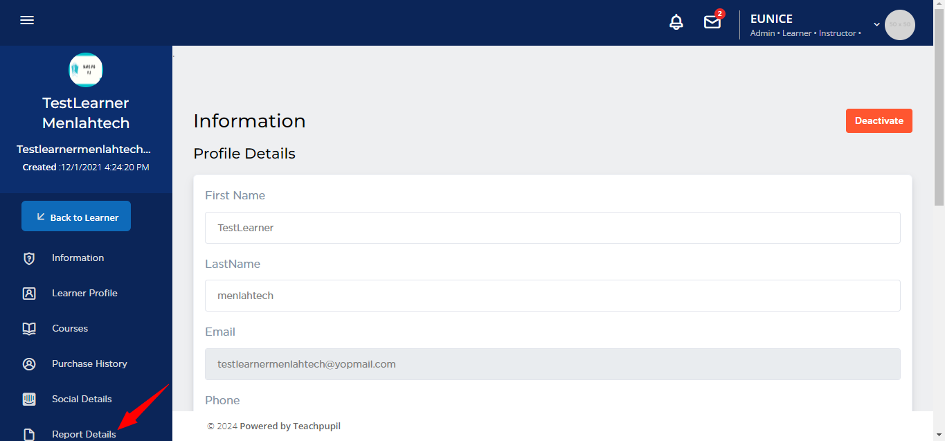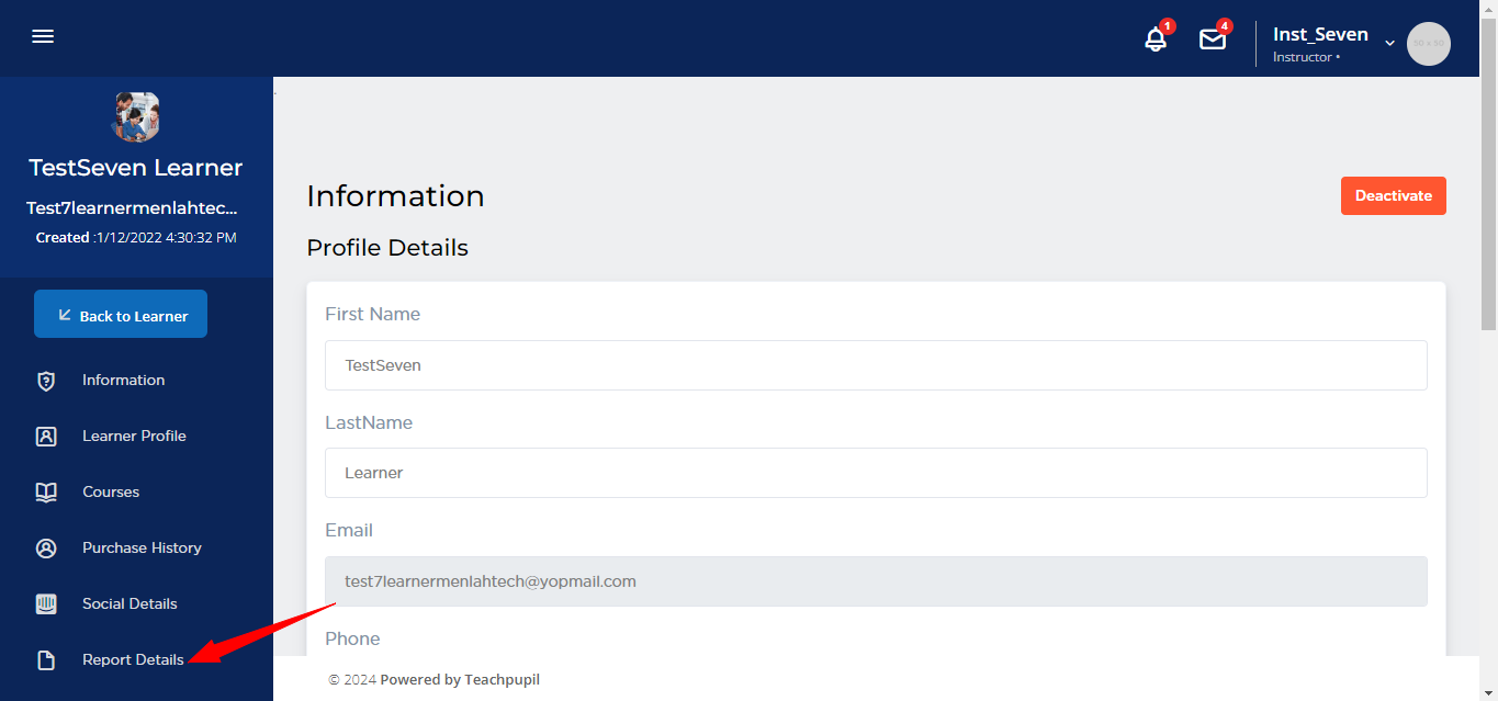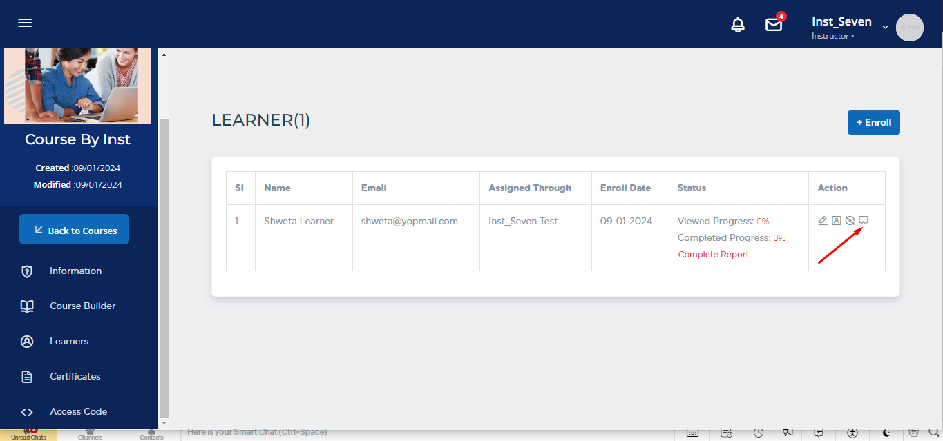 a. We can navigate to learners details page via course page, by clicking on learners icon: