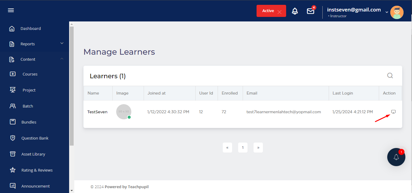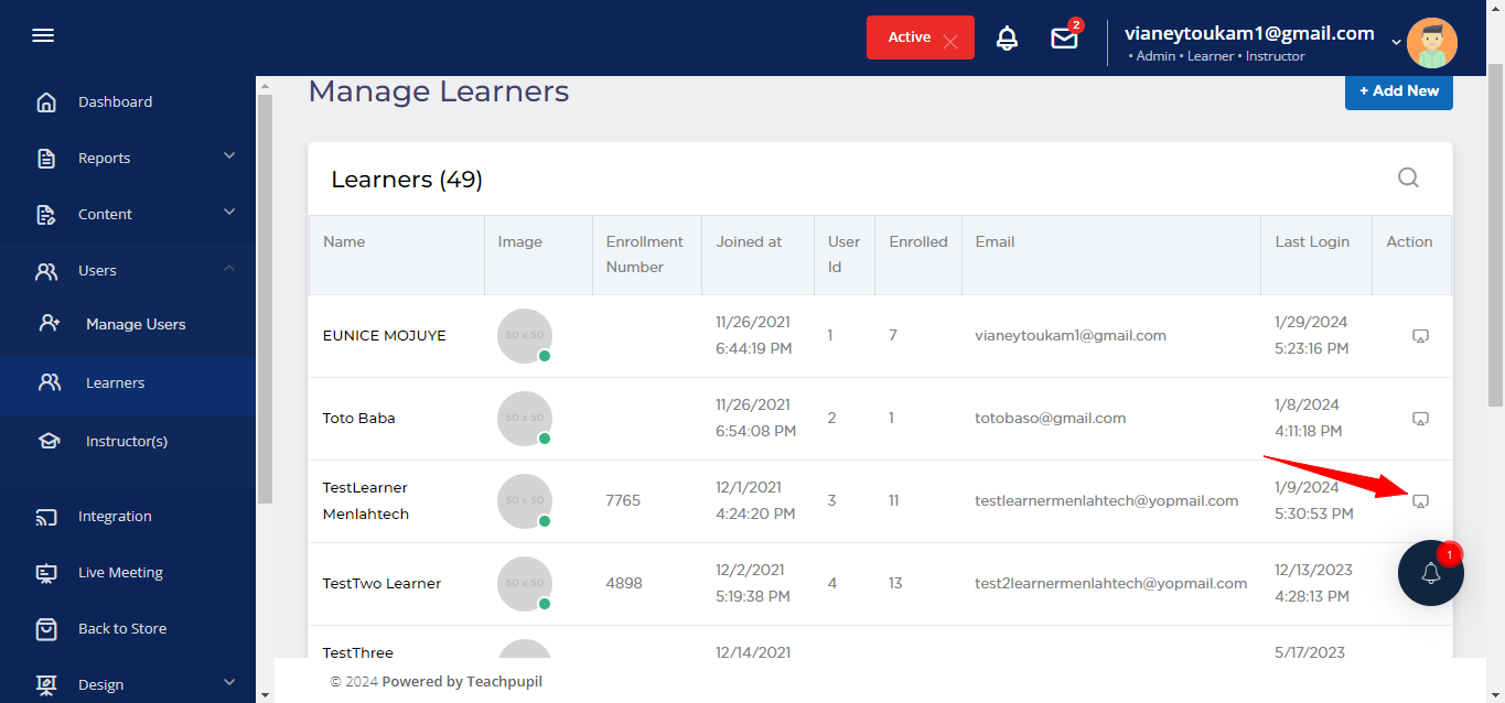 b. Click on the Action icon of the learners to whom you want to provide the report: