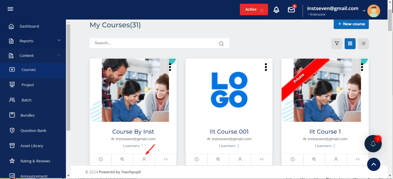 1. Log in as Instructor: Instructor can access report page from two ways: i) Batch page and ii) Courses page