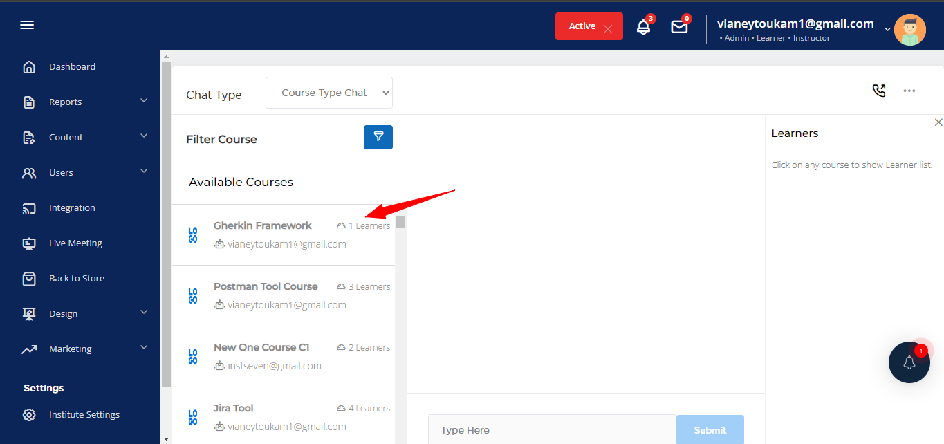 2. Now, Live meeting chat page will be displayed. Open any course or batch chat from the available chats.