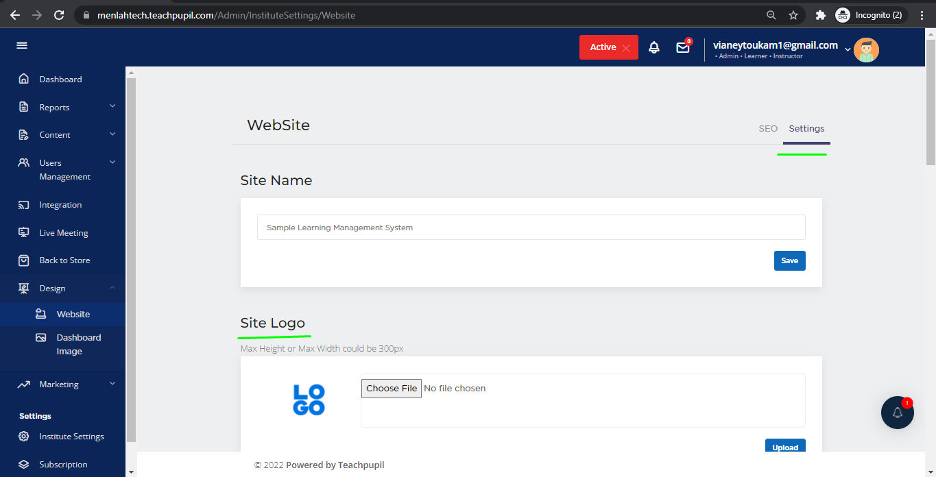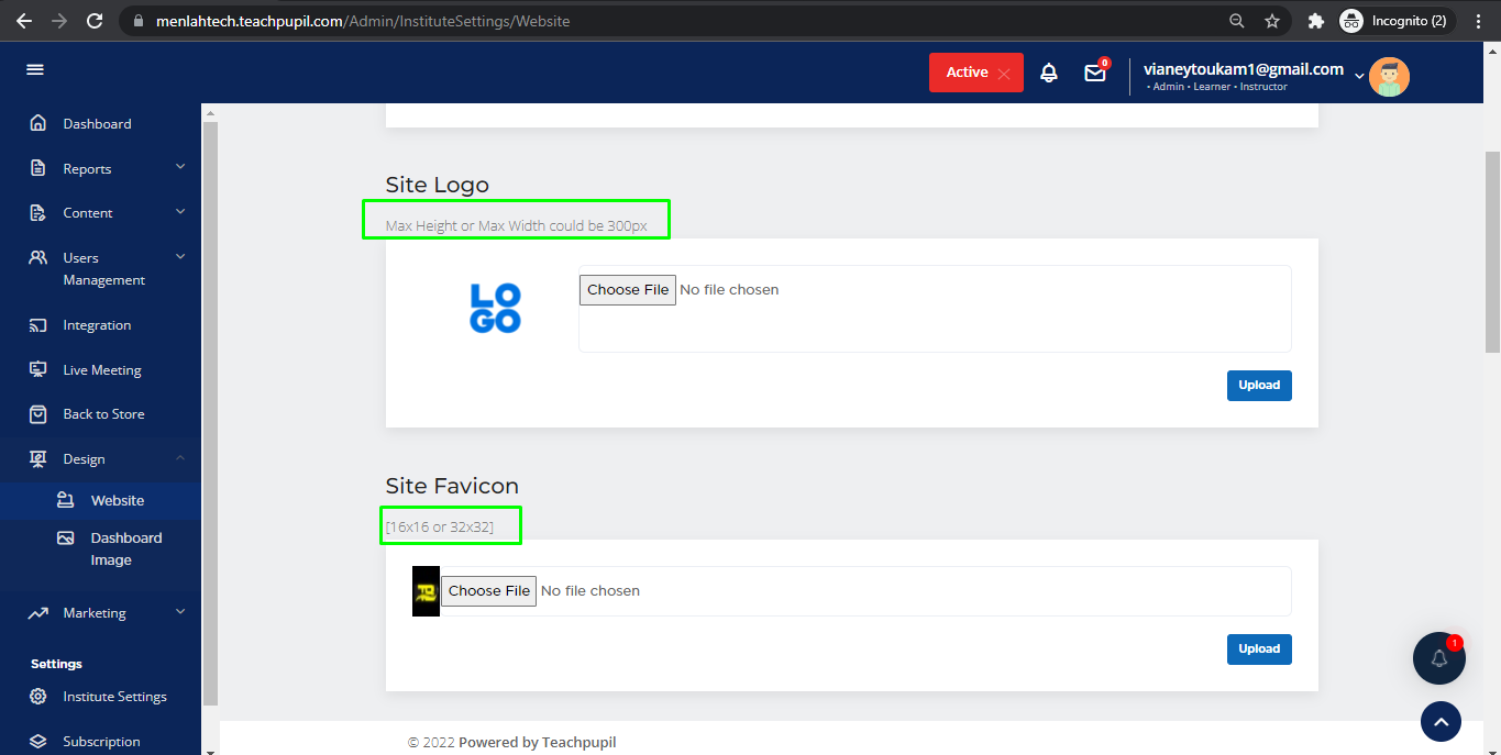 Make sure the height and width of logo image be 300px and favicon image be 16x16 or 32x32.