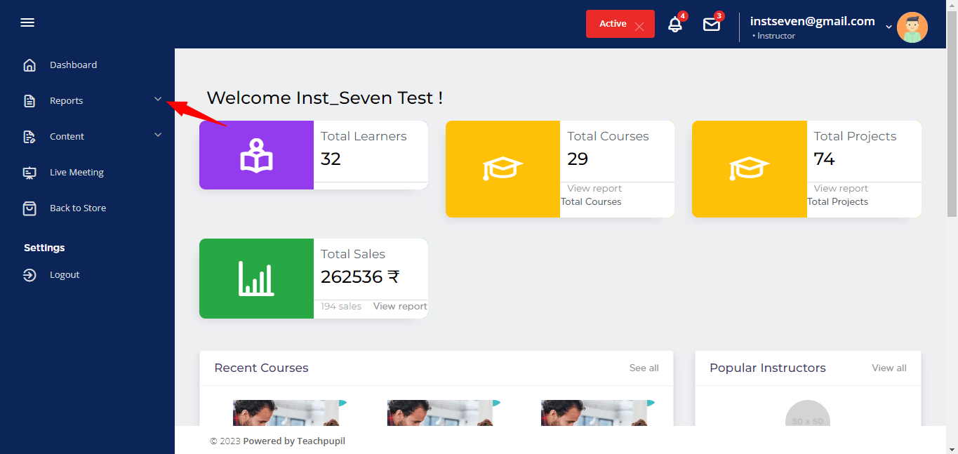 1. Log in as instructor and expand reports section -