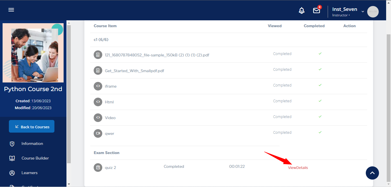 2. Now, in exam section click on View Details option.
